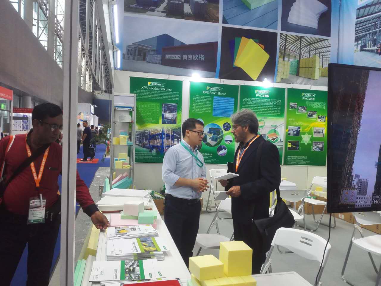 本次展會更加突出環保主題,南京歐格生產的擠塑板和PVC發泡板因為具有環保和綠色節能的特點吸引了前來參觀的國內外嘉賓駐足交流,歐格的擠塑板設備因其優秀的生產工藝和穩定的產能更是引起了嘉賓們高的關注度。在與我們做了充分的溝通和了解后紛紛表達了合作意向,并給我們提出了很多寶貴意見。